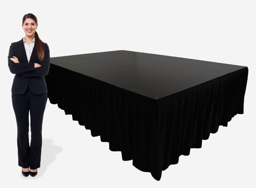 2.4M W , 2.4M L , 0.3M H STAGE + STAGE STEP + SKIRT